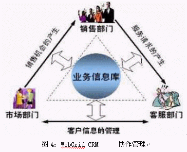 企業(yè)的銷售、服務和市場業(yè)務有一個共同的特點,就是都與客戶打交道,都是以"客戶為中心"開展業(yè)務的。面對共同的客戶,需要共享相同的客戶信息。與此同時,各部門的業(yè)務也不是孤立的,而是在互動的過程中相互促進,共同提升。WebGrid CRM系統(tǒng)根據(jù)CRM理念而設計,將銷售、市場和服務業(yè)務進行整合,提供了統(tǒng)一的操作平臺,實現(xiàn)了業(yè)務信息的共享。此外,WebGrid CRM制定了靈活的工作流程,實現(xiàn)了各個業(yè)務部門之間的信息交互:由市場活動可以生成銷售機會;服務過程中的銷售意向也可以通過反饋提交到銷售部門中去……WebGrid CRM的這一功能消除了市場、銷售和服務各部門之間的信息孤島,將三個部門緊密結合,形成一個有機的整體,從而提升了企業(yè)整體的運營效率。