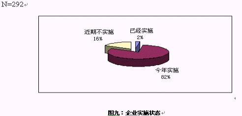 對大多數(shù)企業(yè)來說,對CRM還處于關注階段,只有7家企業(yè)表示已經(jīng)開始實施,在電話訪問中,了解到這7家企業(yè)的實施的主要是在渠道管理和客戶呼叫中心等方面,但表示今年會開始實施的卻超過8成。
