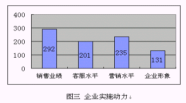 3) 提升企業(yè)形象:很多受訪企業(yè)特別是服務業(yè),已經(jīng)建立客戶忠誠度放在了很重要的位置,但比較其它幾個直接動因,比例偏低,這也說明"以客戶為中心"的觀念還沒有"以利潤為中心"強烈。