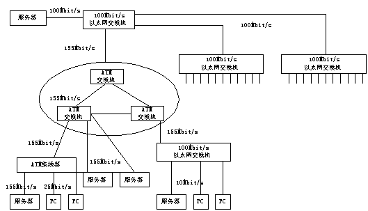 ATM 局域網(wǎng)是指以ATM結(jié)構(gòu)為基本框架的局域網(wǎng)絡(luò),它以ATM局域網(wǎng)交換機(jī)為交換點(diǎn),通過各種ATM接入設(shè)備,如ATM集線器、ATM網(wǎng)卡等將用戶接入局域網(wǎng)。ATM網(wǎng)絡(luò)具有帶寬大,速度高的優(yōu)點(diǎn),并能提供業(yè)務(wù)質(zhì)量QOS服務(wù),其性能大大優(yōu)于傳統(tǒng)共享式局域網(wǎng),但同時(shí)也面臨著高速以太網(wǎng)的挑戰(zhàn)。