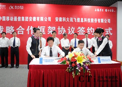 CTI論壇(ctiforum)7月14日消息(記者 張潔):7月11日下午,安徽科大訊飛信息科技股份有限公司與中國移動通信集團(tuán)安徽有限公司在合肥簽署戰(zhàn)略合作框架協(xié)議。根據(jù)協(xié)議,科大訊飛和安徽移動將在技術(shù)和業(yè)務(wù)創(chuàng)新等方面開展深層次合作。