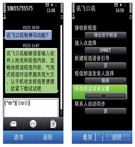 CTI論壇(ctiforum)8月2日消息(記者 張潔):不論是開(kāi)車(chē)還是玩游戲,總是難以騰出手來(lái)操控手機(jī),你是否想過(guò)如果可以通過(guò)耳朵就能聽(tīng)到短信內(nèi)容,然后說(shuō)說(shuō)話就能回復(fù)短信?近日,科大訊飛與騰訊應(yīng)用中心聯(lián)合首發(fā)了訊飛口訊(Symbian)新版v1.0.1100,該產(chǎn)品支持語(yǔ)音發(fā)送短信及新短信自動(dòng)語(yǔ)音朗讀,大大增添了Symbian手機(jī)的實(shí)用性和趣味性,滿足了廣大用戶解放手指、隨時(shí)隨地發(fā)短信的需求。