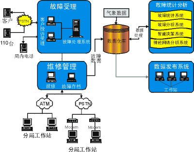 <> 事務(wù)處理中心由事務(wù)受理工作站、故障處理流程控制工作站、檢修信息發(fā)布工作站、數(shù)據(jù)處理服務(wù)器、網(wǎng)絡(luò)服務(wù)器等部分組成
