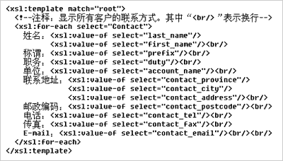 XSL采用結(jié)構(gòu)化描述。XSL遵循XML語法規(guī)范,結(jié)構(gòu)性、可讀性較強。經(jīng)過短時間學習,渠道增值伙伴乃至用戶就可以掌握XSL描述要領,改寫或新建XSL模板,例如定制客戶化的報表。