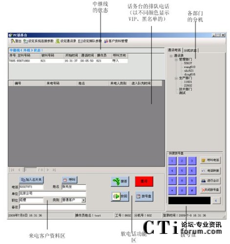 話務臺可看到來話人的主叫號碼及來話人的基本信息