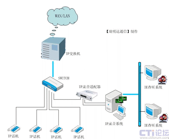 【瑞明達通信】是國內(nèi)較早從事專業(yè)計算機電話語音系統(tǒng)(CTI)產(chǎn)品的開發(fā)商, 在客戶交互式解決方案行業(yè)中有十多年的從業(yè)經(jīng)驗,具備雄厚的語音產(chǎn)品開發(fā)能力。最近幾年,基于 IP 的下一代通信,正在以前所未有的速度改變著全世界的通信架構和商業(yè)格局!救鹈鬟_通信】作為錄音技術的領先廠商,就已經(jīng)具有前瞻性的潛心致力于基于IP通訊線路的多媒體記錄解決方案的研發(fā),RMD_VoIPlog錄音系統(tǒng)是由【瑞明達通信】自行開發(fā)研制的新一代IP錄音系統(tǒng)。該系統(tǒng)在記錄VoIP語音的同時,所需的語音資源通過軟件方式或硬件平臺直接由網(wǎng)絡中的RTP等數(shù)據(jù)流獲取,無須和座席分機或中繼線進行并接,因此是一種軟件/硬件分別實現(xiàn)的錄音系統(tǒng),是真正的基于IP 的錄音解決方案。RMD_VoIPlog錄音系統(tǒng),是以數(shù)字記錄、數(shù)據(jù)庫查詢、光盤存儲等先進技術為手段,為通話語音的錄制、管理提供了一種先進、科學而又行之有效的方法。二、RMD_VoIPlog錄音系統(tǒng)運行環(huán)境