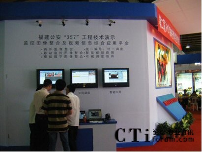 CTI論壇(ctiforum)06月26日消息: 6月18日,第七屆中國•海峽項目成果交易會在福州金山展覽城隆重召開。第二屆海峽公共安全及警用裝備科技項目博覽會作為其中重要的一塊專題展,受到了福建省省長、省公安廳及各地市公安局各級領(lǐng)導的高度重視,公安、邊防、消防等多個部門全力參與?七_攜可視指揮調(diào)度、圖像整合、電子地圖、智能應(yīng)用等最新的視頻監(jiān)控技術(shù),作為公安系統(tǒng)“357”工程代表技術(shù)在本次展會上進行了展出和演示。