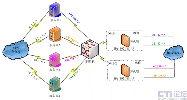 系統(tǒng)平臺采用集群化部署,實現跨網絡分布式,從而在應用中實現南北網通電信的互聯(lián)互通,以及專網用戶的無障礙接入,實現方式如下圖所示: