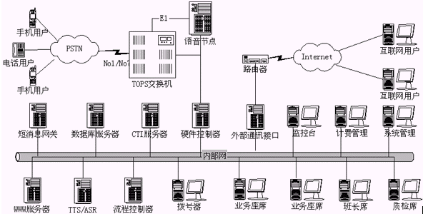 統(tǒng)不僅提供基本電信業(yè)務業(yè)務,而且便于開展多種增值業(yè)務,如外包座席、電信秘書、電話廣告、專家咨詢、考分查詢業(yè)務等,而且還提供眾多的互聯(lián)網(wǎng)的業(yè)務,如點擊通話、表單共享、網(wǎng)頁護航、共享白板等業(yè)務。
