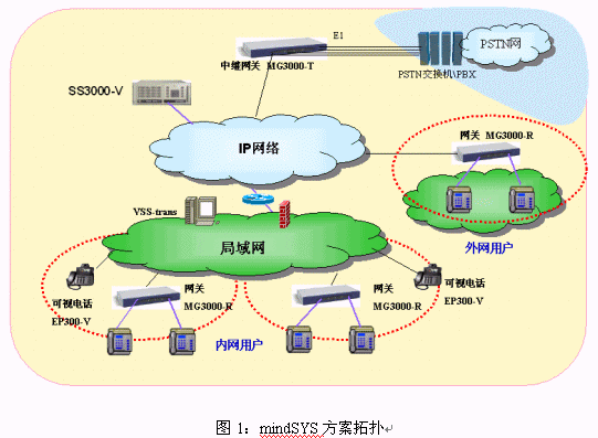 mindSYS方案通過數(shù)字中繼或者模擬中繼與電信運營商的程控交換機連接,無縫的接入PSTN網(wǎng)絡(luò),使得VOIP與傳統(tǒng)的電話、手機隨時互通,網(wǎng)內(nèi)網(wǎng)外同樣打電話,溝通世界的每一個角落。