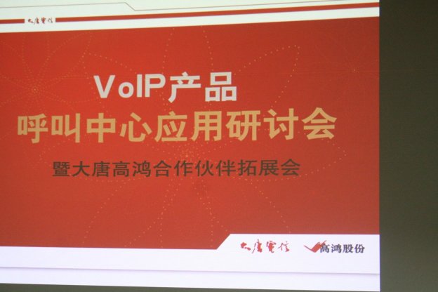 2006年9月8日,由中國VoIP業(yè)界的引領者大唐高鴻數(shù)據(jù)網(wǎng)絡技術股份有限公司(股票簡稱:高鴻股份;股票代碼:000851)主辦的大唐高鴻VoIP產品呼叫中心應用研討會在北京大唐電信集團主樓隆重舉行,此次會議由CTI論壇協(xié)辦。這是會議是大唐高鴻攜其VoIP產品進軍呼叫中心領域的里程碑。參加會議的代表來自虛擬運營商、VoIP公司、呼叫中心公司,企業(yè)行業(yè)客戶以及知名媒體共120余人,大唐高鴻還向會議代表介紹了其VoIP產品與呼叫中心廠商的合作計劃,預示著大唐高鴻正式向全國展開VoIP產品在呼叫中心行業(yè)中的應用的市場攻勢。