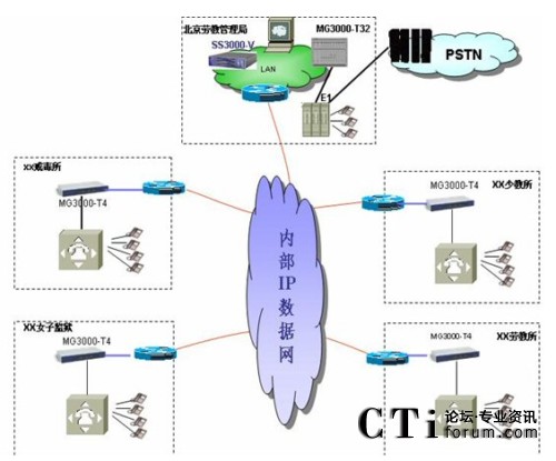 根據(jù)北京監(jiān)獄管理局情況大唐高鴻提出在監(jiān)獄系統(tǒng)現(xiàn)有的網(wǎng)絡(luò)建立IP語音系統(tǒng),使各地監(jiān)獄之間的語音服務(wù)運(yùn)營在現(xiàn)有完善的IP網(wǎng)絡(luò)上,實現(xiàn)“語音、數(shù)據(jù)、視頻三網(wǎng)合一”的先進(jìn)網(wǎng)絡(luò)。