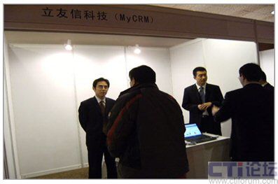 在隨會附設的展臺前,MyCRM更是受到不少參會企業(yè)的關注。圖為MyCRM咨詢顧問為參會企業(yè)家講解MyCRM系統: