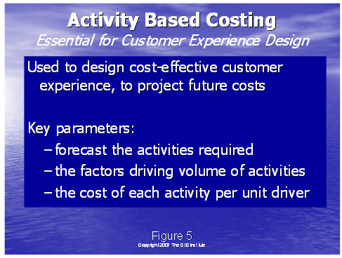 通過了解圖8,我們將以行動成本管理大體是什么的總括作為結束。我們從左邊的成本驅動因素開始——這是做工作的原因,例如:獲得客戶,維持客戶。就如圖4中所說的,這些成本驅動因素可以細分到工作行動上去。可以通過描述人,培訓,設備和技術資源來組成工作行動。資源驅動因素被用于分配這些企業(yè)成本到各個行動上去。下一步就是系統(tǒng)地確定行動驅動因素,分配行動成本到成本對象上去,這有利于決策的制定。例如,獲得一個客戶和維持一個客戶需要花費多少的成本?