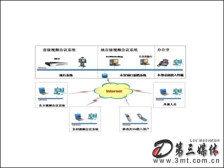 此外,為保證外出領導或員工不會錯過任何一次重要會議,該套系統(tǒng)需要支持與普通電話、手機等語音終端的實時接入,而專網(wǎng)外計算機桌面終端地接入,可保證外出的干部能夠通過普通計算機參加重要會議或培訓。該平臺還要能夠通過升級支持3G技術的接入,從而使整套系統(tǒng)能夠順應未來通訊技術的發(fā)展。