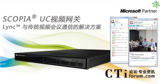 通過SCOPIA UC視頻網(wǎng)關(guān),Microsoft的Lync和Office Communicator用戶可以輕松地與任意基于國際標(biāo)準(zhǔn)建立的傳統(tǒng)視頻會(huì)議系統(tǒng)無縫連接,無論該系統(tǒng)是會(huì)議室型高清設(shè)備、桌面型終端,抑或網(wǎng)真系統(tǒng)等等。采用該解決方案,用戶可同時(shí)享用傳統(tǒng)視頻會(huì)議和Lync、Office Communicator桌面辦公通訊系統(tǒng)帶來的便捷和高效。