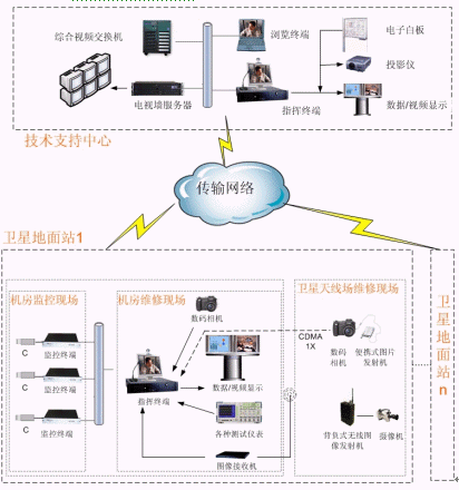 技術(shù)支持中心技術(shù)專家在指導維修現(xiàn)場進行遠程技術(shù)支持或遠程培訓時,根據(jù)現(xiàn)場環(huán)境的不同可采用固定方式與移動方式對維修現(xiàn)場技術(shù)人員進行視、音頻實時可視指導。大大縮短了技術(shù)人員的排障時間,保證了通信設備的正常運行。