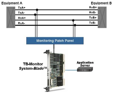 每個(gè)TB監(jiān)測(cè)系統(tǒng)刀片都配有64E1/T1的接收接口,可單向監(jiān)測(cè)多達(dá)64個(gè)E1/T1鏈路,或雙向監(jiān)測(cè)多達(dá)32個(gè)E1/T1鏈路。使用TelcoBridges的監(jiān)測(cè)接線(xiàn)面板,每條鏈路通過(guò)基于標(biāo)準(zhǔn)的高阻抗連接進(jìn)行探測(cè),實(shí)現(xiàn)非插入式網(wǎng)絡(luò)監(jiān)測(cè)。