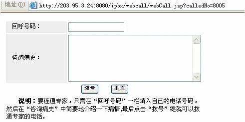 Call直接與專家坐席通話,與專家溝通自己的病情和對(duì)藥物的需求,尋求專家的指導(dǎo)和建議。而沒有耳機(jī)和麥克風(fēng)配置的消費(fèi)者則可以輸入自己家中或者手機(jī)的號(hào)碼,享受回呼服務(wù),一樣不用支付電話費(fèi)就得到企業(yè)專家的電話服務(wù)。
