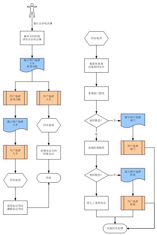 當(dāng)電話簿記錄中出現(xiàn)同名時(shí),可以定義同名的區(qū)分條件,如不同部門,不同性別等。在語(yǔ)音識(shí)別時(shí),根據(jù)區(qū)分條件提示主叫選擇。