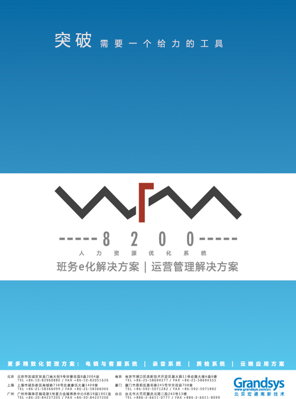 Grandsys 有最堅強的設(shè)計研發(fā)團隊,以16年豐富的行業(yè)知識為基礎(chǔ),發(fā)展自有品牌應(yīng)用軟件與專業(yè)服務(wù)事業(yè),盛大推出LOG8000KS錄音與關(guān)鍵詞辨識分析系統(tǒng)、QMS8100KS質(zhì)檢與關(guān)鍵詞辨識分析系統(tǒng)、WFM8200人力資源優(yōu)化管理系統(tǒng)、和eVoice8300電話營銷與客戶服務(wù)系統(tǒng),為企業(yè)打造完整的呼叫中心管理平臺。