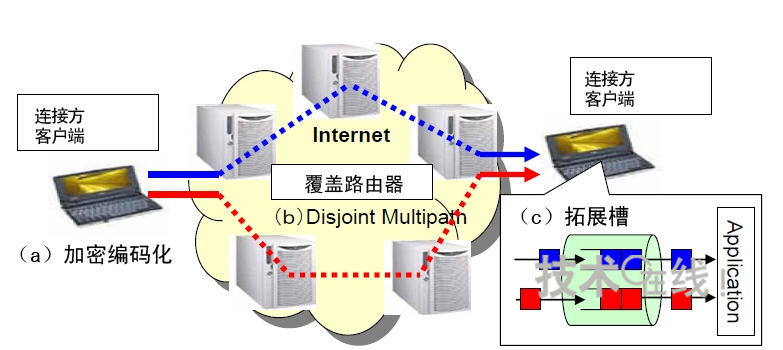 由于是利用多路徑路由發(fā)送分割的數(shù)據(jù),1條路徑被竊聽只會(huì)有部分分割數(shù)據(jù)被竊聽。不過,如果發(fā)送分割數(shù)據(jù)的全部路徑都被竊聽,分割數(shù)據(jù)也可能全部流出。為此,此次的秘密通信系統(tǒng)設(shè)想采用基于覆蓋路由器的網(wǎng)絡(luò)(覆蓋網(wǎng)絡(luò)),將全部數(shù)據(jù)被竊聽的可能性減小到了接近0。這是因?yàn)楦采w路由器的通信路徑能夠進(jìn)行實(shí)時(shí)切換。此次的保密通話系統(tǒng)將在覆蓋網(wǎng)絡(luò)達(dá)到實(shí)用化水平時(shí)投產(chǎn)實(shí)用。計(jì)劃在3~4年內(nèi)實(shí)現(xiàn)。