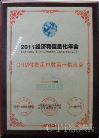 作為全球企業(yè)管理軟件領(lǐng)跑者,八百客參加了此次會議,并就IT業(yè)戰(zhàn)略性發(fā)展、工業(yè)轉(zhuǎn)型升級等問題和與會企業(yè)家進(jìn)行了深入探討,集中、深刻闡釋產(chǎn)業(yè)精髓,洞悉和把握未來發(fā)展方向,尋求最佳的信息化成長模式。年會期間的招待晚宴穿插各類年度大獎的頒獎典禮,讓與會的政界、學(xué)界、商界等各路貴賓充分交流信息,建立友誼,為達(dá)成長期合作奠定良好的基礎(chǔ);诎税倏驮趪鴥(nèi)CRM領(lǐng)域的優(yōu)秀表現(xiàn),本次年會特別授予了八百客“CRM付費用戶數(shù)第一供應(yīng)商”的大獎。