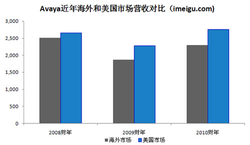 2008、2009、2010財年Avaya總營收分別為49.23億美元、41.50億美元、50.60億美元,2009財年營收受宏觀經(jīng)濟(金融海嘯)因素影像而出現(xiàn)15.7%的下降,2010財年Avaya公司收購原北電的企業(yè)通信部門(NES),受此合并報表影響和經(jīng)濟復(fù)蘇因素,2010財年營收相比2009財年增長21.9%。