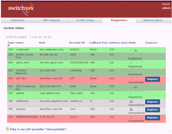 圖5中綠色表示正常,紅色表示出現(xiàn)問題,白色表示從沒有接通過。如果你按診斷(Diagnose),系統(tǒng)便會通過自動測試,告訴你問題出自哪一部分。如果需要對每一個的詳細解析,可以按底部Why這個標題,找尋答案。類似的終端、話機等配置、硬件診斷等,也有非常明了的界面與解決問題的辦法。