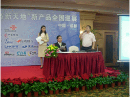 2007年8月15日下午,中國(guó)聯(lián)通、中寬網(wǎng)信"10175商務(wù)新天地"新產(chǎn)品全國(guó)巡展成都站在家園國(guó)際酒店順利召開。此站是這次全國(guó)巡展活動(dòng)的第六站。成都站會(huì)議得到了中國(guó)聯(lián)通的大力支持,中國(guó)聯(lián)通數(shù)固部張宇、中國(guó)聯(lián)通四川分公司數(shù)固部副總經(jīng)理彭總、中國(guó)聯(lián)通四川分公司數(shù)固部鐘宇及中國(guó)聯(lián)通的各級(jí)代理商出席此次會(huì)議。