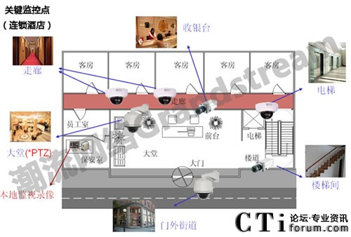 采用潮流網(wǎng)絡(luò)提供的網(wǎng)絡(luò)監(jiān)控平臺(tái)來加強(qiáng)管理和提高各個(gè)門市的服務(wù)質(zhì)量。由于是連鎖酒店,所以高層主管無法時(shí)時(shí)刻刻在各個(gè)酒店內(nèi)管理,讓高層對(duì)于酒店內(nèi)的營(yíng)運(yùn)管理十分頭痛,所以當(dāng)主管在裝設(shè)監(jiān)控系統(tǒng)時(shí)要求希望達(dá)到透過Internet的集中監(jiān)控、分散管理,監(jiān)控中心的操作平臺(tái)方面希望能使用人性化的界面簡(jiǎn)單不繁瑣。潮流網(wǎng)絡(luò)的監(jiān)控系統(tǒng)可展開樹狀目錄進(jìn)行不同地域的階層式管理,高層主管可透過網(wǎng)絡(luò)進(jìn)行“跨地域、跨網(wǎng)域”的實(shí)時(shí)監(jiān)看,隨時(shí)可掌控酒店內(nèi)的營(yíng)運(yùn)狀況,無需再親自到酒店。