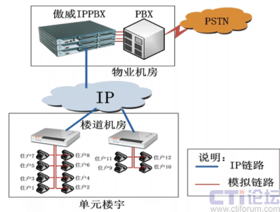現(xiàn)有XX物業(yè)公司,所管轄的小區(qū)20棟樓共計240戶,網(wǎng)絡布線已經到每個單元樓里的網(wǎng)絡交換機,并且在每個單元樓內部,已經將網(wǎng)絡線和電話線分別布線到樓宇中的每個家庭住戶。但從物業(yè)機房到每個單元樓的電話線沒有放置。客戶要求省去從物業(yè)機房中心到每棟樓的重新布線,并讓每個家庭都能有電話接入。實現(xiàn)每個家庭都可以電話接聽和撥打外線,并且讓每家住戶感覺不到和使用傳統(tǒng)的線路的區(qū)別。