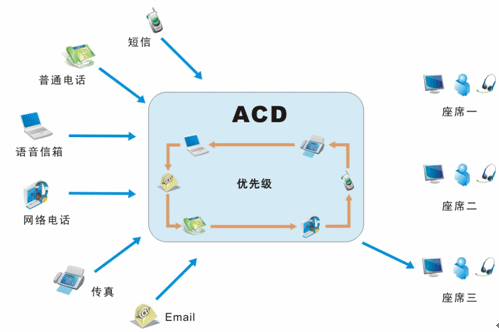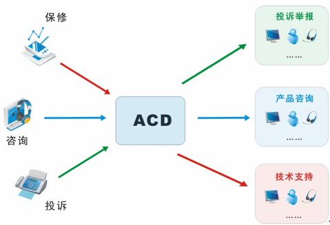 我們目前接入的媒體有很多,不再是傳統(tǒng)的單一電話接入方式,還包括網絡呼入、E-mail呼入,短信、留言等,所有的媒體接入都通過統(tǒng)一的排隊路由,以最優(yōu)化的策略分配給最適合的座席人員;并且,不同的媒體類型具有不同的優(yōu)先級,ACD(自動話務分配)根據優(yōu)先級和設定的排隊算法,自動實現(xiàn)媒體的統(tǒng)一智能路由。