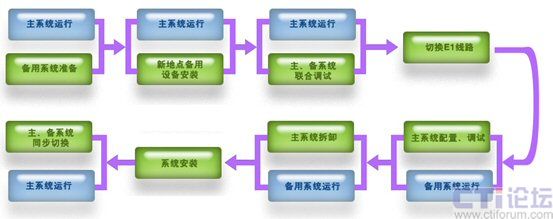 在系統(tǒng)切換前后過程中,在兩個地點都要進行大量的準備和備份工作,還有設(shè)備的拆卸和安裝工作,在此過程中,要保證兩個工作地點的局域網(wǎng)絡通暢,確保工作正常進行。