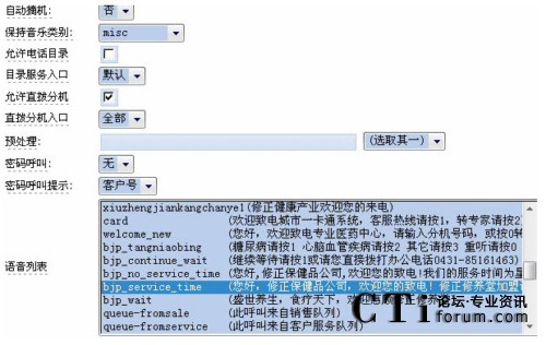 可以根據(jù)其自身業(yè)務的特點,設定多個處理呼入電話的隊列。針對每個隊列,都可以設定固定接聽坐席和動態(tài)接聽坐席,以便根據(jù)來電情況,靈活調(diào)整某個隊列接聽話務員的人數(shù)。用戶還可以方便的設定每個隊列的等候音樂,隊列位置提示以及溢出路由。針對隊列中的各個坐席,用戶還可以靈活設定振鈴的策略。