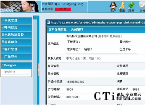 作為呼叫中心的核心功能,來電彈屏功能在客戶和服務代表之間建立了溝通的橋梁。當電話接入客服代表電話振鈴的同時,電腦屏幕會彈出客戶的相關資料。如果是新客戶,則彈出空白頁面,客服代表可以說歡迎的同時錄入客戶資料,以備客戶下次來電時查詢。當客戶在網(wǎng)上選購產(chǎn)品時,有問題可以隨時打電話溝通,來時的同時,座席電腦上彈出客戶已經(jīng)填寫的資料,座席對客戶的資料一目了然,提高了工作效率。來電彈屏的頁面可以根據(jù)用記要求定制。