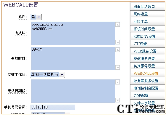 MVB2000系統(tǒng)中可以對WEBCALL的各種參數(shù)進行設(shè)置,如下圖所示: