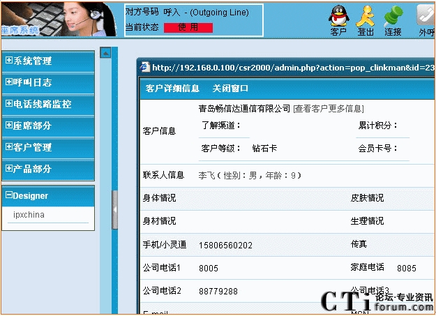維護人員在局域網(wǎng)絡(luò)環(huán)境下,通過自己PC機的瀏覽器的頁面即可完成對呼叫中心系統(tǒng)的管理和維護: