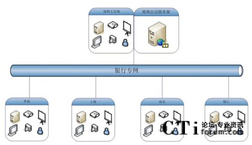 如圖,大新銀行視頻會議系統(tǒng)應(yīng)用規(guī)模為5個點,包括香港、深圳、上海、南京、鎮(zhèn)江,服務(wù)器部署在深圳用來保證香港和內(nèi)地的鏈接效果,服務(wù)器出口帶寬為5M共享,各分會場通過專網(wǎng)訪問服務(wù)器。在這個網(wǎng)絡(luò)平臺上,紅杉樹網(wǎng)絡(luò)視頻會議所提供的高質(zhì)量音視頻圖像、方便易用的文檔、文件共享數(shù)據(jù)功能,使得大新銀行能夠在這個平臺上進(jìn)行從桌面討論到會議室正式會議等各種規(guī)模的應(yīng)用。在這個平臺上,除了進(jìn)行日常例會、業(yè)務(wù)交流等常見的應(yīng)用之外,業(yè)務(wù)培訓(xùn)、異地招聘等也是經(jīng)常進(jìn)行的內(nèi)容。業(yè)務(wù)人員利用數(shù)據(jù)功能,把平常培訓(xùn)很難懂的新銀行產(chǎn)品、費率等進(jìn)行介紹,節(jié)約了以前培訓(xùn)所花費的大量精力和時間,為新產(chǎn)品迅速占領(lǐng)市場掌握了主動。