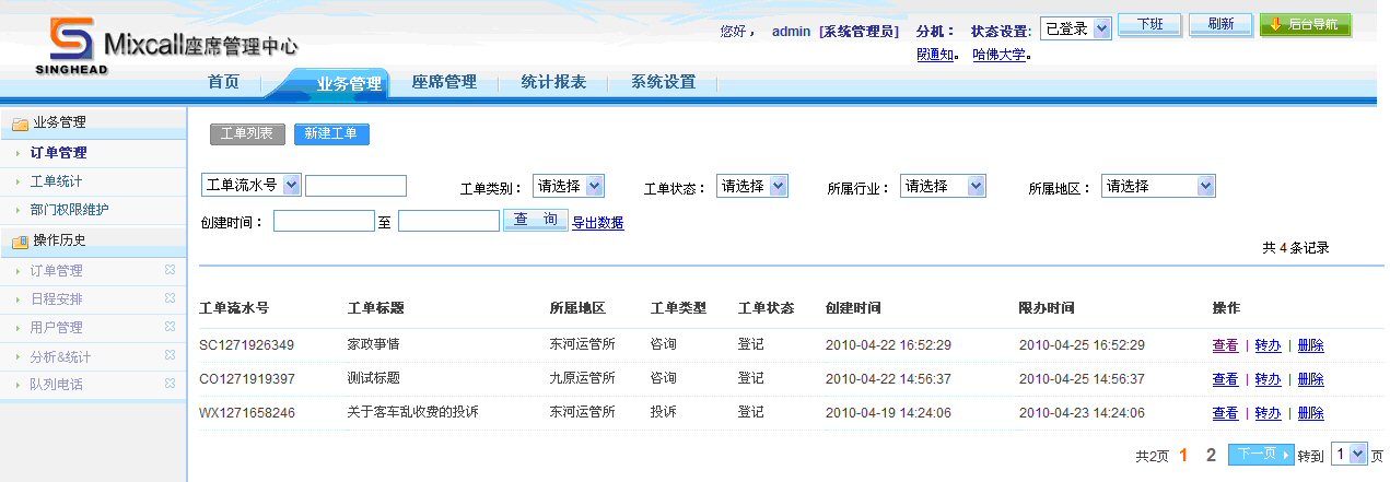 通過工單統(tǒng)計功能,座席人員可以看到所屬權限的所有工單和狀態(tài)。