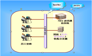 3Com NBX統(tǒng)一消息系統(tǒng)將不同的信息技術(shù)和網(wǎng)絡(luò)結(jié)合起來,提供了一個(gè)語音郵件獲取接口,利用該接口,可以將話機(jī)的語音留言、傳真等轉(zhuǎn)發(fā)到用戶的辦公(或個(gè)人)電子信箱中,而使用者只需通過單一的終端設(shè)備,比如PC或電話,就能夠在任何時(shí)間、任何地點(diǎn)接收和獲取不同來源的信息(如:聲音、傳真和電子郵件)。