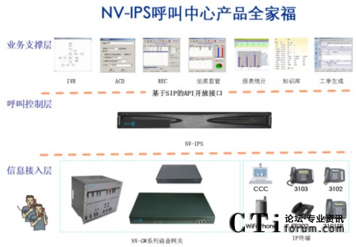 2、“呼叫控制層”指呼叫中心解決方案的核心組件-軟交換平臺NV-IPS,特點(diǎn)如下: