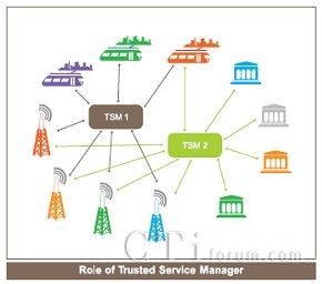 可信服務(wù)管理 (TSM)為復(fù)雜的、有眾多參與者的NFC生態(tài)系統(tǒng)帶來(lái)的穩(wěn)定性及可預(yù)見(jiàn)性。其核心作用是分配和管理各個(gè)服務(wù)提供商的應(yīng)用。它是移動(dòng)運(yùn)營(yíng)商、銀行和公交公司的一個(gè)共同的聯(lián)絡(luò)點(diǎn)。對(duì)移動(dòng)NFC應(yīng)用進(jìn)行安全下載和生命周期管?尚欧⻊(wù)管理必須贏(yíng)得參與各方的信任才能完成這一任務(wù)。