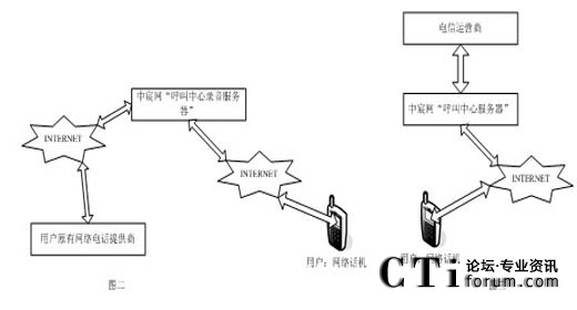 客戶使用流程為:網絡話機——〉internet——〉中宸網“呼叫中心錄音服務器”——〉用戶原有網絡電話提供商——〉被叫用戶。