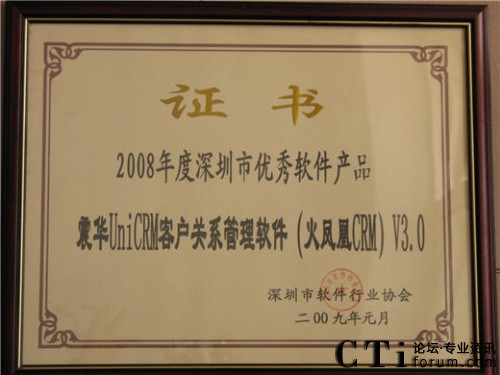 火鳳凰CRM軟件獲“2008年度深圳市優(yōu)秀軟件產(chǎn)品”稱(chēng)號(hào)