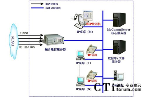 圖 1 MyComm 純 IP 電話與語音解決方案網(wǎng)絡(luò)結(jié)構(gòu)示意圖