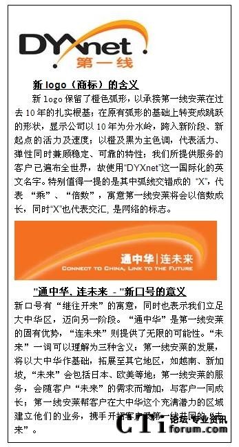 CTI論壇(ctiforum)08月20日消息: 知名網(wǎng)絡(luò)服務(wù)商第一線安萊,十年間憑借經(jīng)驗豐富的團隊,靈活的服務(wù)、可靠的網(wǎng)絡(luò)系統(tǒng)等,遙遙領(lǐng)先于眾多競爭對手,傲然屹立于大中華地區(qū)。目前,正值第一線安萊十周年慶之際,全新的企業(yè)商標(biāo)和“通中華.連未來”的新口號也向大眾展示。公司提出將幫助客戶實現(xiàn)“立足大中華,拓展全世界”的愿景。