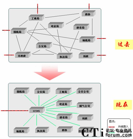 “12345”政府服務(wù)熱線以呼叫中心結(jié)合門戶網(wǎng)站和業(yè)務(wù)流程整合,創(chuàng)新了電子政務(wù)應(yīng)用模式,將傳統(tǒng)的電話服務(wù)和網(wǎng)站信息管理及協(xié)同辦公工作流程技術(shù)等結(jié)合,建立了統(tǒng)一的面向公眾服務(wù)的綜合性服務(wù)平”,實(shí)現(xiàn)“一站式”服務(wù),完全符合電子政務(wù)的信息化框架。