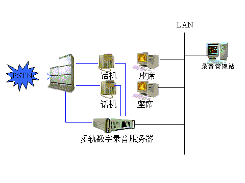一、 錄音系統(tǒng)概念: 在通訊領域中,電話網范圍已經普及到中國的各個角落成為主要的通信手段,通過電話人們可以相互溝通,傳達信息,通話過程中錄制有效的信息越來越得到各企事業(yè)的重視。在商務服務領域,各行業(yè)建設了客戶服務中心既"呼叫中心"代替?zhèn)鹘y(tǒng)的柜臺業(yè)務,通過錄音記錄業(yè)務代表的服務質量對其進行監(jiān)督和考核以便提高企業(yè)的名譽;在政府安全部門對一些重點監(jiān)控對象的往來通信進行錄音和實時監(jiān)聽,以及對某些重要指令錄音。