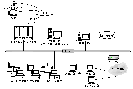 深圳市燃?xì)饧瘓F(tuán)是深圳市一家大型燃?xì)鈱I(yè)公司,為全市25萬管道氣用戶和16萬瓶裝氣用戶提供燃?xì)夤夥⻊?wù)。作為一家公用事業(yè)型企業(yè),公司以"安全供氣,優(yōu)質(zhì)服務(wù)"為宗旨,在客戶服務(wù)方面一直走在全國(guó)同行的前列。隨著公眾電話的普及,越來越多的業(yè)務(wù)通過電話、傳真的方式達(dá)成。以石油氣公司(二級(jí)瓶裝氣公司)為例,目前80%以上的銷售量是通過送氣預(yù)約電話完成的,此外,還有大量的業(yè)務(wù)咨詢電話、業(yè)務(wù)催辦電話、燃?xì)鈸屝揠娫、投訴電話、業(yè)務(wù)辦理預(yù)約電話等等,用戶通過電話達(dá)成的業(yè)務(wù)已經(jīng)占到公司業(yè)務(wù)的90%以上。由于各種業(yè)務(wù)電話分散,給客戶帶來諸多不便,同時(shí),公司內(nèi)部各部門也難以及時(shí)有效溝通,無法對(duì)外提供統(tǒng)一口徑的服務(wù)。